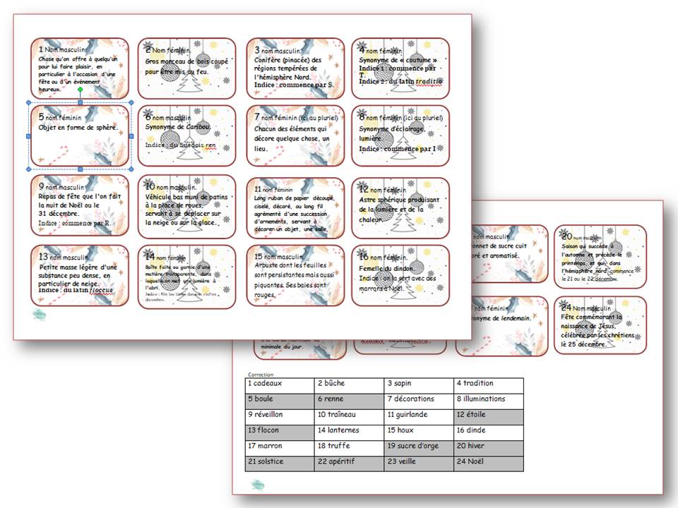 Ma version légèrement plus complexe est ici . Elle est accompagnée d’une grille de mots mêlés.