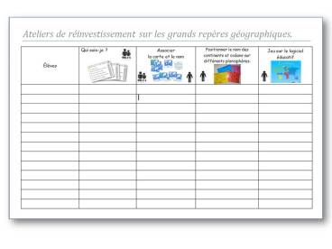 Un petit tableau pour que les élèves se positionnent : Ateliers de réinvestissement sur les grands repères géographiques
