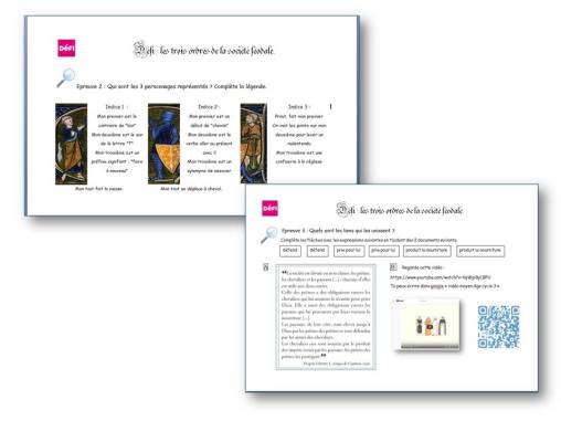 Voici un défi à mettre en place par groupes, afin de découvrir les 3 ordres de la société médiévale ainsi que les liens qui les unissent.
