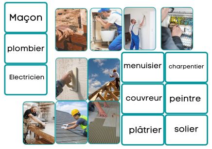 Première phase de jeu avec un mémory sur les différents métiers du bâtiment : on pourra utiliser celui de Max Malo ou celui-ci :