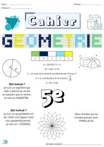 Voici donc ma création où les élèves devront résoudre quelques calculs vus en 6ème pour faire apparaître le mot géométrie : Page de garde – 5e Géométrie