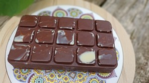 – Chocolats de Paries (célèbre chocolatier Bayonnais) : 200 g de chocolat noir pour l’enrobage, 90g de chocolat au lait pour la ganache mélangé à 19g de praliné noisette, 86 g de crème chaude et 19g de beurre. Les adultes en raffolent.