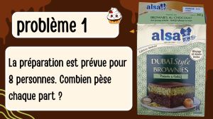 Des rituels de résolution de problème « maths en vie » autour de la préparation Alsa du Brownie Dubaï (tellement bonne cette préparation) : rituel